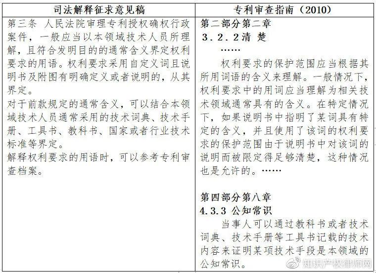 1 “司法解释征求意见稿”第三条与《专利审查指南(2010)》的相关规定的对比评论