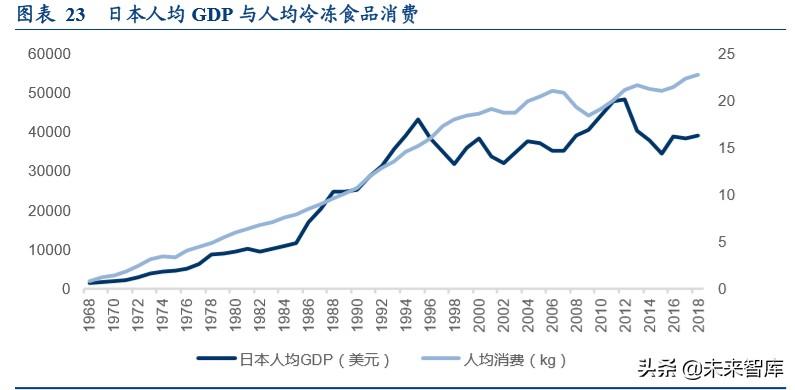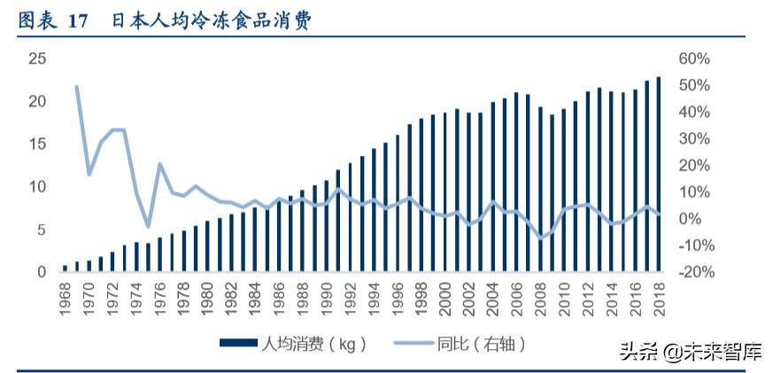我国目前相当于日本上世纪 80 年代中期的水平,也正是日本人均冷冻食品消费保持较好 增速的阶段。