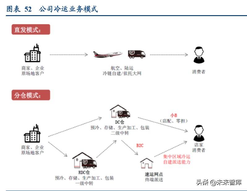 我们认为未来顺丰冷运业务会结合快运、同城、供应链, 并由顺丰科技赋能,共同打造销售地冷仓网、直通产地运输、后端面向门店和消费者的城市配送的端到端冷链解决 方案。