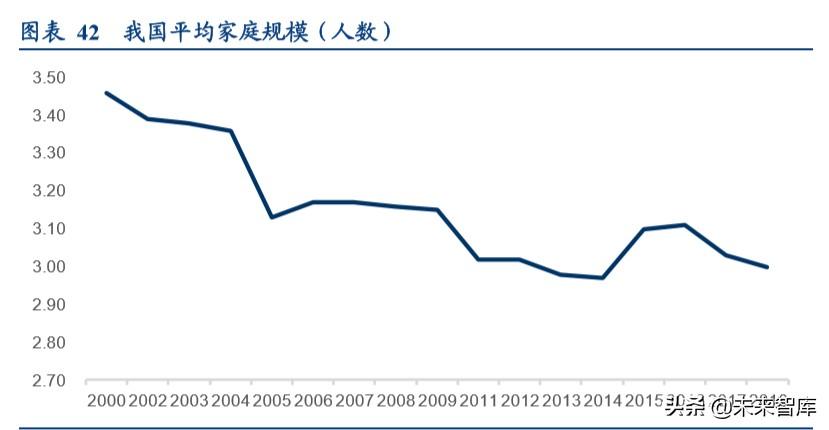 我国家庭规模平均人数也从 2000 年的 3.4 人降至 3 人,与日本社会当前接近;