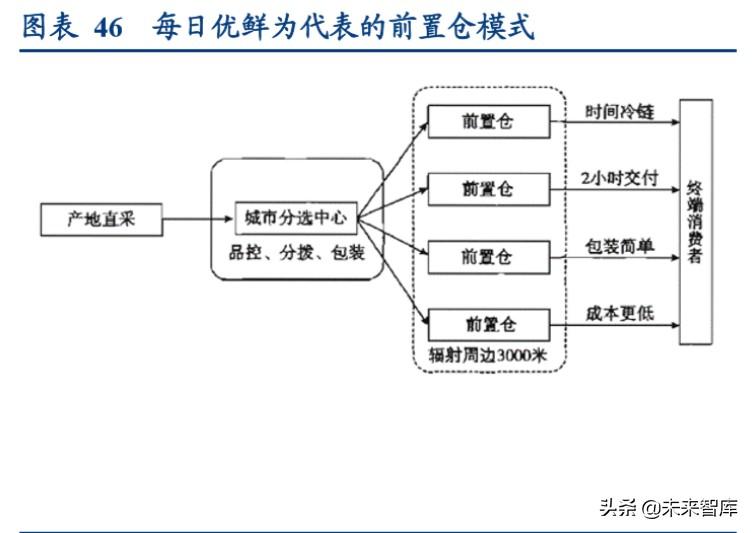 以百果园、每日优鲜(腾讯投资)、叮咚买菜为代表的垂直类,通常采取前置仓-到家模式运营,