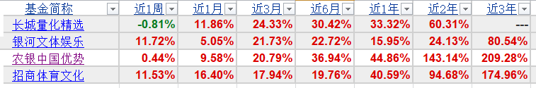 银河文体娱乐,招商体育文化,这两只基金属于文体类,首先是这两只基金规模小,在一亿左右,其次是文体这个主题一直表现不佳,哪怕它现在还行,但依旧不太合适。
