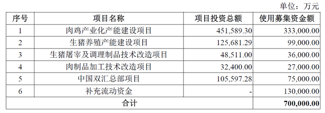双汇发展拟募资不超70亿,助力养鸡养猪